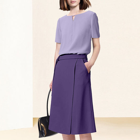 European and American Socialite Fancy Solid Color Shirt Print Skirt Suit Women's 2023 New Work Clothing Two-Piece Set for Summer