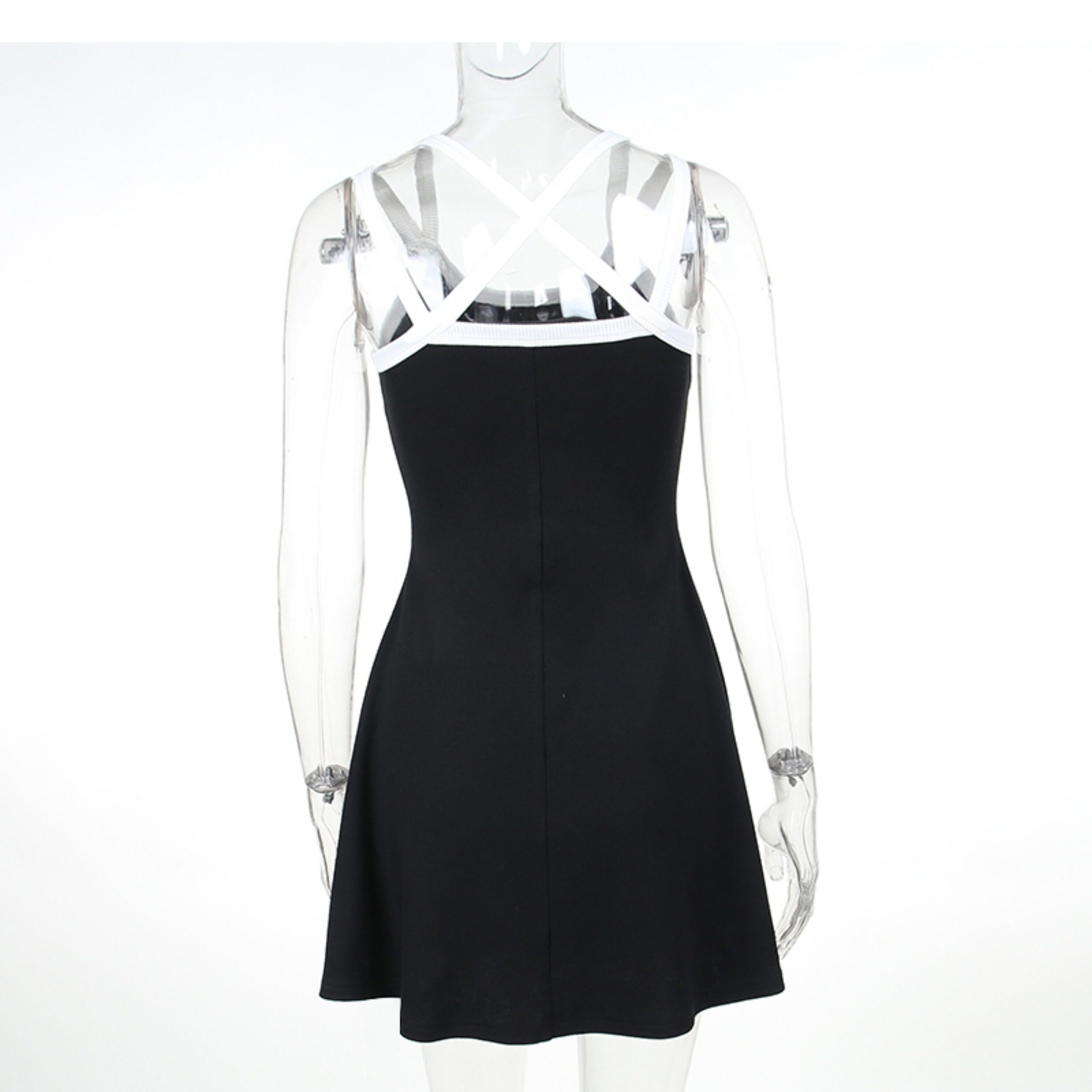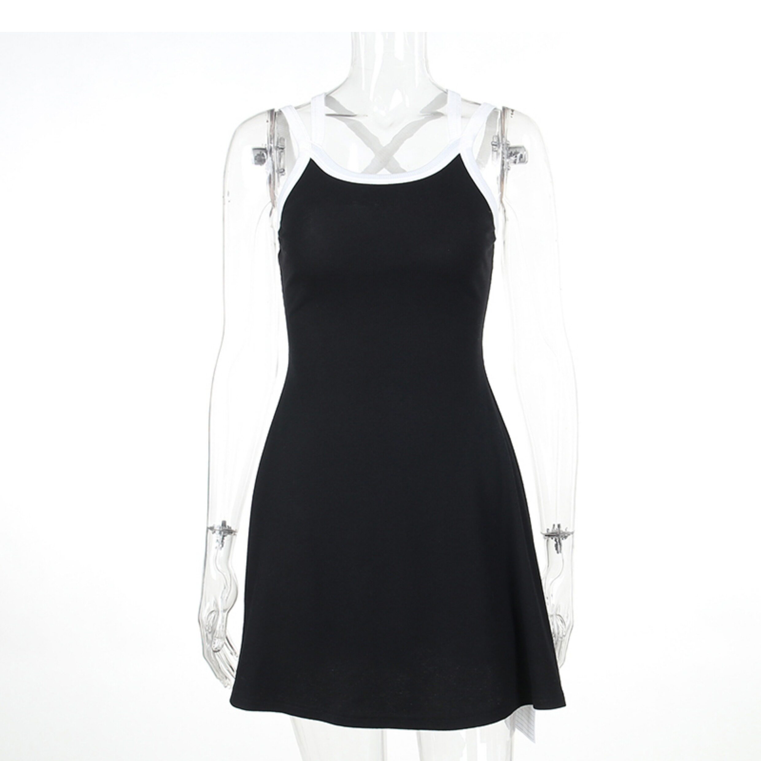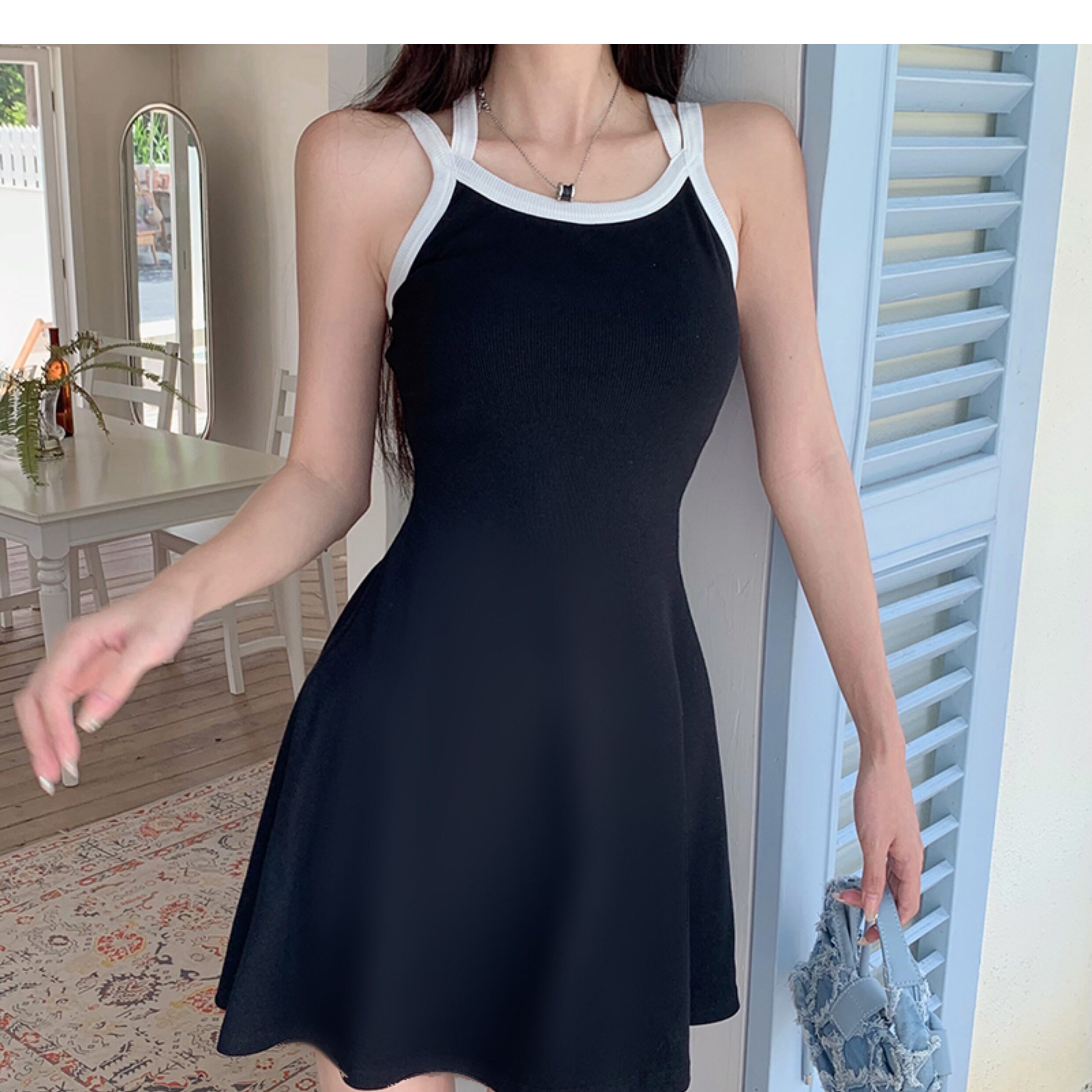 Instahot Contrast Color Double-Shoulder Strap A- line Dress 2023 New Slim Fit Waist-Controlled Slimming A- line Slip Dress